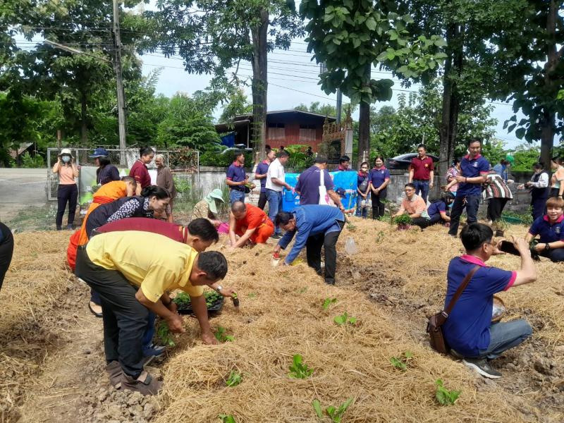 description วันพฤหัสบดี ที่ ๒๔ สิงหาคม พ.ศ. ๒๕๖๖ เวลา ๑๐.๐๐ น นายพินิจ สุวรรณไตร นายก อบต.สันโค้ง เข้าร่วมโครงการปลูกผักสวนครัวจากวัดสู่ชุมชนเพื่อสร้างความมั่นคงทางอาหาร สร้างคลังอาหารในชุมชน ณ วัดบุญงาม หมู่ที่ ๔ ต.สันโค้ง อ.ดอกคำใต้ จ.พะเยา โดยได้รับเกียรติจาก นายนพรัตน์ รักษ์ไพรสาณฑ์ นายอำเภอดอกคำใต้ เป็นประธานเปิดโครงการ โดยมี คณะผู้บริหาร อบต.สันโค้ง ผู้นำท้องที่ท้องถิ่น และประชาชน ต.สันโค้ง เข้าร่วมโครงการ ซึ่งดำเนินการโดย สำนักงานเกษตรจังหวัดพะเยา ร่วมกับ สำนักงานเหล่ากาชาด และสำนักงานพัฒนาชุมชนจังหวัดพะเยา person admin
