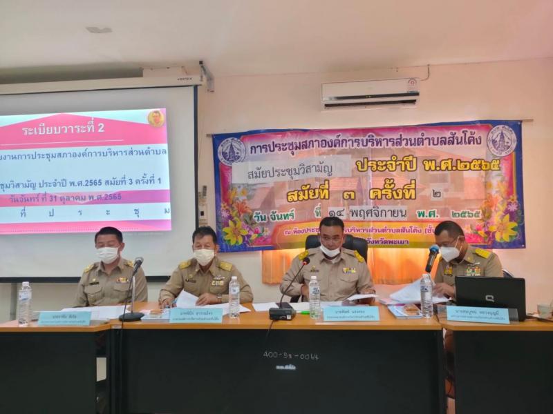 description วันจันทร์ ที่ ๑๔ พฤศจิกายน พ.ศ.๒๕๖๕ เวลา ๐๙.๓๐ น. นายพิมพ์ แสงทอง ประธานสภา อบต.สันโค้ง ทำหน้าที่ประธานในการประชุมสภาองค์การบริหารส่วนตำบลสันโค้ง สมัยประชุมวิสามัญ ประจำปี พ.ศ.๒๕๖๕ สมัยที่ ๓ ครั้งที่ ๒ ณ ห้องประชุม อบต.สันโค้ง (ชั้น ๒) อ.ดอกคำใต้ จ.พะเยา เพื่อพิจารณาญัตติต่าง ๆ ตามหน้าที่และอำนาจขององค์การบริหารส่วนตำบลสันโค้ง ตามที่ นายพินิจ สุวรรณไตร นายก อบต.สันโค้ง เสนอญัตติ และได้นำสมาชิก อบต.สันโค้ง ลงนามในบันทึกความร่วมมือ(MOU)ในการป้องกันและปราบปรามยาเสพติด โดยมีสมาชิก อบต.สันโค้ง คณะผู้บริหาร ปลัด อบต.สันโค้ง พนักงานส่วนตำบลและพนักงานจ้าง สังกัด อบต.สันโค้ง person admin