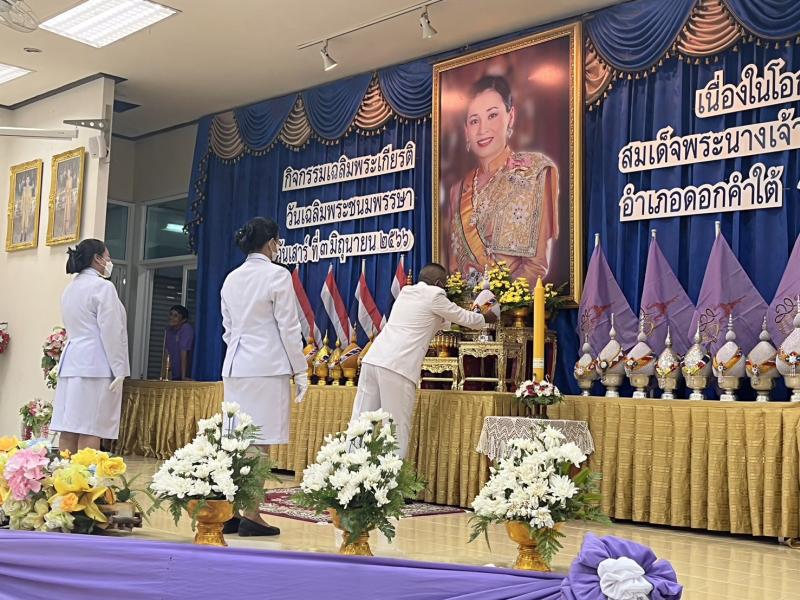 description วันเสาร์ที่ ๓ มิถุนายน พ.ศ. ๒๕๖๖ เวลา ๑๖.๐๐ น. นายพินิจ สุวรรณไตร นายก อบต.สันโค้ง มอบหมายให้ ร.ต.อ.ภูษิต จำรัส รองนายก อบต.สันโค้ง นำ พนักงานส่วนตำบล และพนักงานจ้างทั่วไป ประกอบด้วย นางสาวบุปผา คนสนิท ครูชำนาญการพิเศษ นางอาริสาร์ อารมสวะ ครูชำนาญการพิเศษ นางสาวไข่มุก จิตรจักร ครูผู้ดูแลเด็ก และนางสาวพรวิกา ไชยสาร ผู้ดูแลเด็ก เข้าร่วมพิธีถวายเครื่องราชสักการะและวางพานพุ่ม และพิธีจุดเทียนถวายพระพรชัยมงคล เนื่องในวันเฉลิมพระชนมพรรษาสมเด็จพระนางเจ้าสุทิดาพัชรสุธาพิมลลักษณ พระบรมราชินี เพื่อน้อมรำลึกถึงสมเด็จพระนางเจ้าสุทิดาพัชรสุธาพิมลลักษณ พระบรมราชินี ณ หอประชุมอำเภอดอกคำใต้ อ.ดอกคำใต้ จ.พะเยา person admin