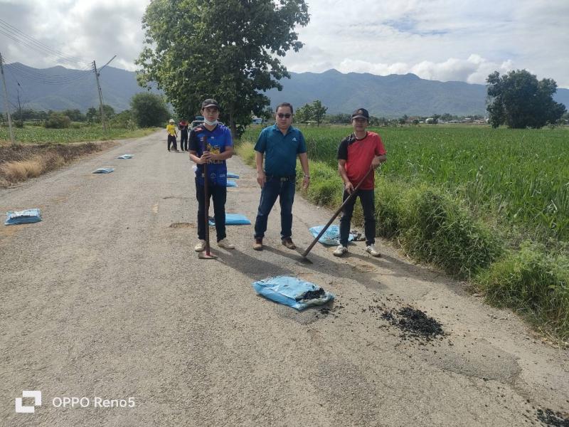 งานป้องกันและบรรเทาสาธารณภัย อบต.สันโค้ง ลงพื้นที่ซ่อมแซมถนน หมู่ที่ ๔ , ๖ , ๑๐ และ ๑๑