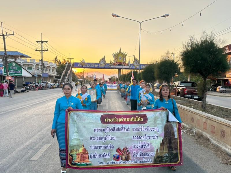 description นายพินิจ สุวรรณไตร นายก อบต.สันโค้ง นายณรงค์ฤทธิ์ ศรีวิราช กำนัน ต.สันโค้ง นายพิมพ์ แสงทอง ประุธานสภา อบต.สันโค้ง และนางปภังกร จำรัส ประธานกลุ่มแม่บ้านตำบลสันโค้ง นำ คณะผู้บริหาร อบต.สันโค้ง ผู้นำท้องที่ท้องถิ่น ต.สันโค้ง สมาชิกสภา อบต.สันโค้ง และกลุ่มแม่บ้าน ต.สันโค้ง ได้เข้าร่วมกิจกรรมเทศกาลวันดอกคำใต้งาม ครั้งที่ 37 ในระหว่างวันที่ 10 - 19 กุมภาพันธ์ พ.ศ. 2568 ณ สนามหน้าที่ว่าการอำเภอดอกคำใต้ จ.พะเยา ในการเข้าร่วมกิจกรรมฯ ครั้งนี้ องค์การบริหารส่วนตำบลสันโค้ง ได้รับรางวัลต่าง ๆ ดังนี้ 1. รางวัลที่ 1 การประกวดนิทรรศการ (ซุ้ม) ของดีประจำตำบล 2. รางวัลชมเชย การประกวดขบวนแห่ศิลปวัฒนธรรม 3. รางวัลที่ 3 การประกวดรำวงย้อนยุค 4. รางวัลขวัญใจมหาชน การประกวดแม่เฮือนงาม ช่วงอายุ Young สาว อายุ 18 - 34 ปี และ 5. รางวัลที่ 4 การประกวดนางงามสาวประเภทสอง Miss Queen Dokkhamtiai 2025 โดยได้รับความร่วมมือจากภาครัฐ เอกชน และประชาชนตำบลสันโค้งเข้าร่วมกิจกรรมฯ ในครั้งนี้โดยพร้อมเพรียงกัน person admin