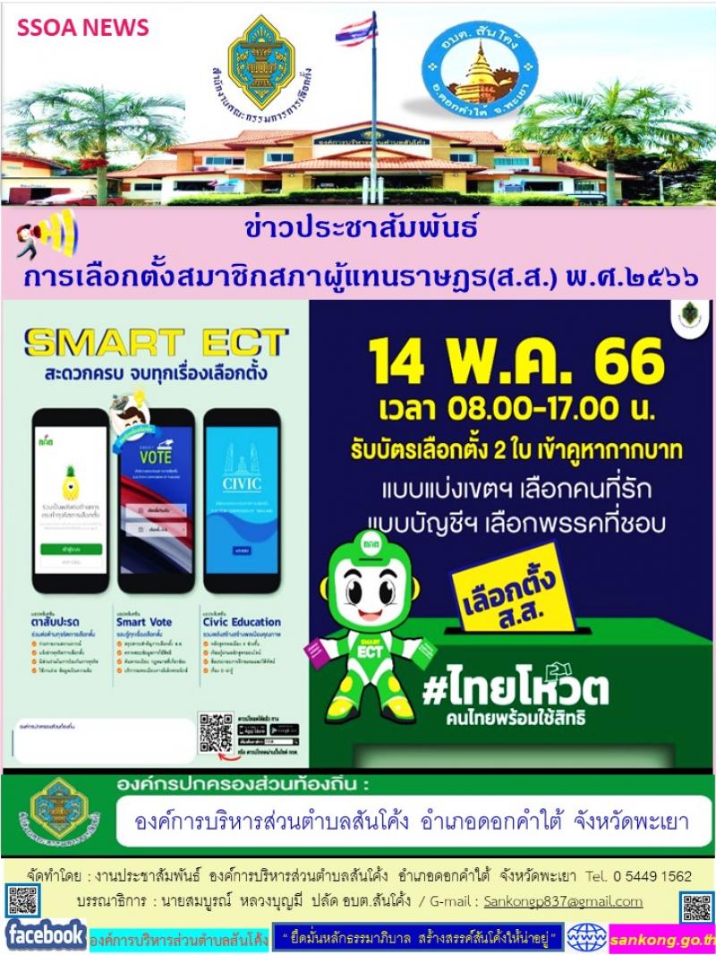 description งานประชาสัมพันธ์ องค์การบริหารส่วนตำบลสันโค้ง อำเภอดอกคำใต้ จังหวัดพะเยา ขอเชิญชวนร่วมรณรงค์ "การต่อต้านทุจริต ซื้อสิทธิขายเสียง" และประชาสัมพันธ์ให้่ประชาชนตำบลสันโค้ง ผู้มีสิทธิออกเสียงเลือกตั้งไปใช้สิทธิเลือกตั้งสมาชิกสภาผู้แทนราษฎร พ.ศ.2566 ในวันอาทิตย์ ที่ 14 พฤษภาคม พ.ศ.2566 ตั้งแต่เวลา 08.00 - 17.00 น. person admin