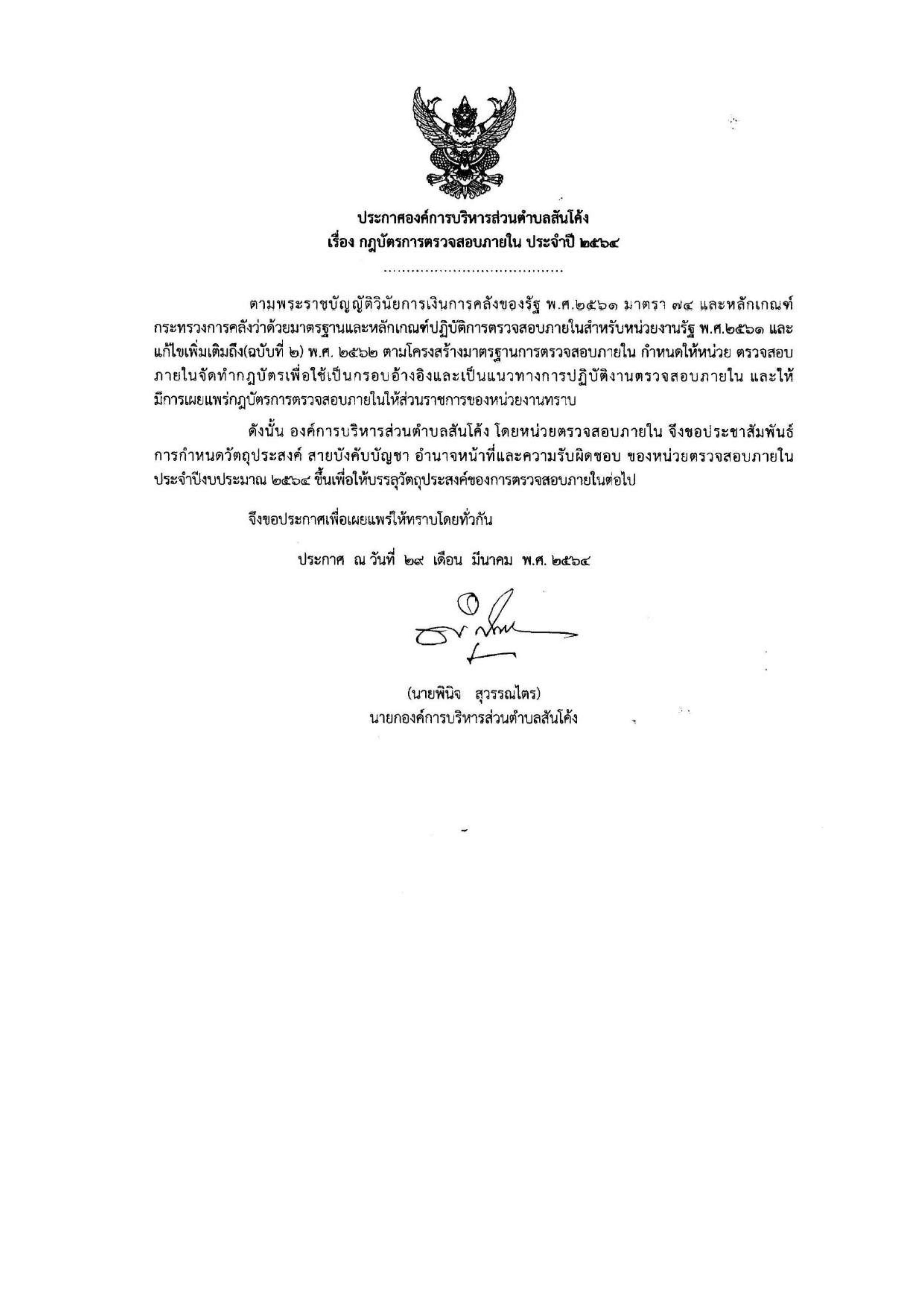 ประกาศฯ เรื่อง กฎบัตรตรวจสอบภายใน ประจำปี 2564
