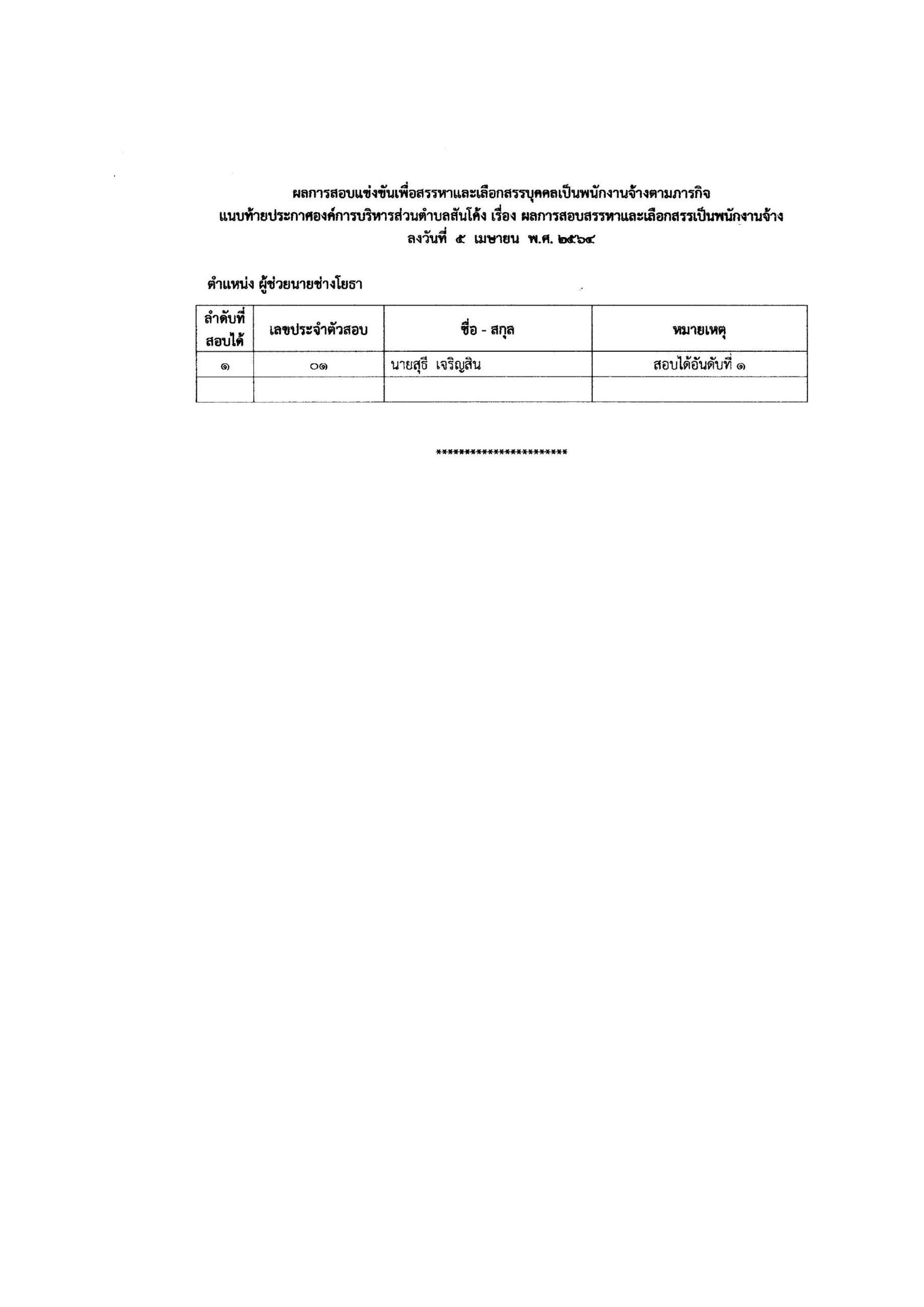 ประการผลการสอบแข่งขัน