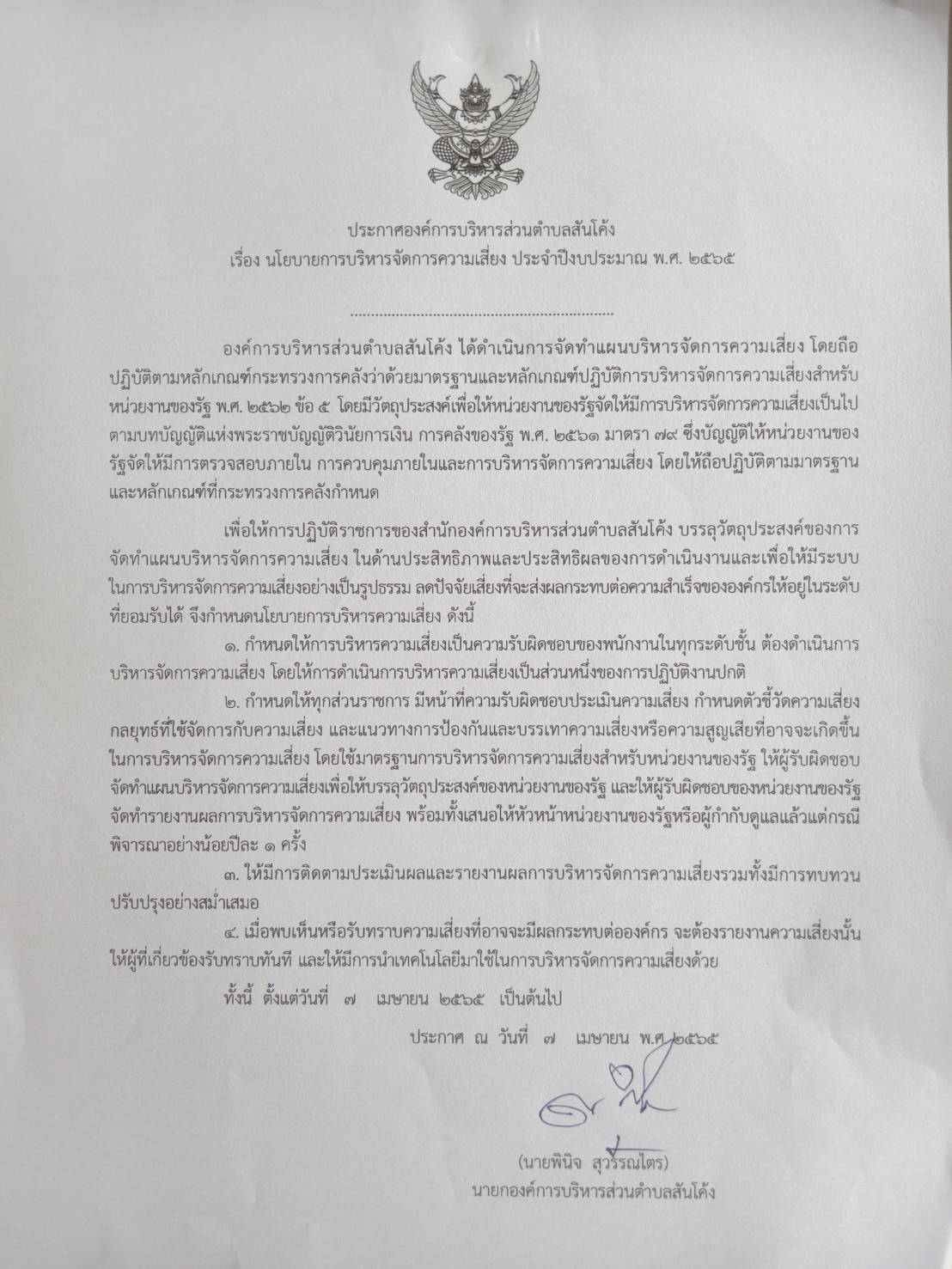 นโยบายการบริหารจัดการความเสี่ยง ประจำปีงบประมาณ พ.ศ.2565