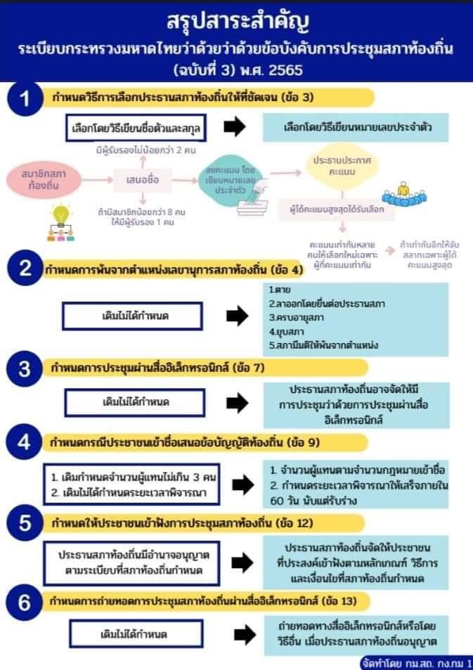 สรุปสาระสำคัญ ระเบียบกระทรวงมหาดไทยว่าด้วยข้อบังคับการประชุมสภาท้องถิ่น (ฉบับที่ ๓) พ.ศ.๒๕๖๕